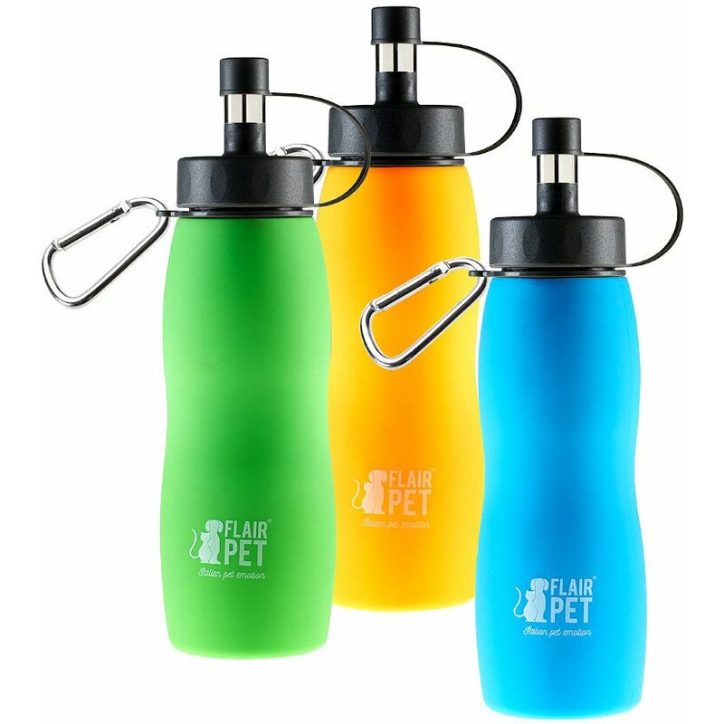 Dotata di un sistema antigoccia, con valvola di apertura e chiusura evita inutili sprechi d&rsquo.acqua. La borraccia, perfetta in viaggio, è. in silicone atossico e sicuro, lavabile in lavastoviglie. . Compresa di un comodo gancio pratico per appenderla alla tua cintura o al guinzaglio. Disponibile in colori super moderni quali arancio, blu o verde.