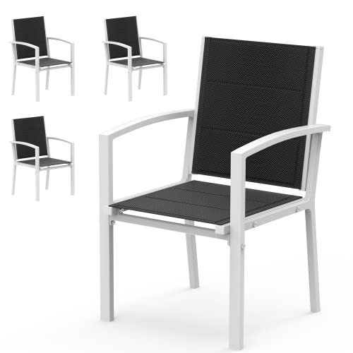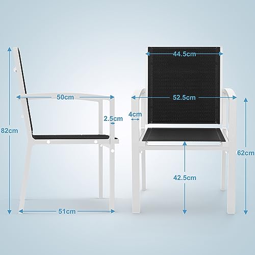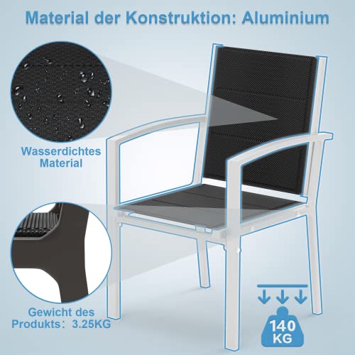 Flamaker Sedia da Giardino in Alluminio, 2 Pezzi 4 Pezzi 6 Pezzi, Home Set Comodi Cuscini e Schienale in Rete, Protezione Antipioggia e Solare per Outdoor e Interno, 4pz Bianco