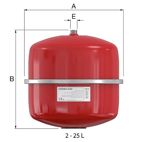 Flamco Contra-Flex 26243 - Serbatoio di espansione - 25 litri/1,5 [3 bar] - Rosso - per impianti di riscaldamento e sistema di raffreddamento a circuito chiuso
