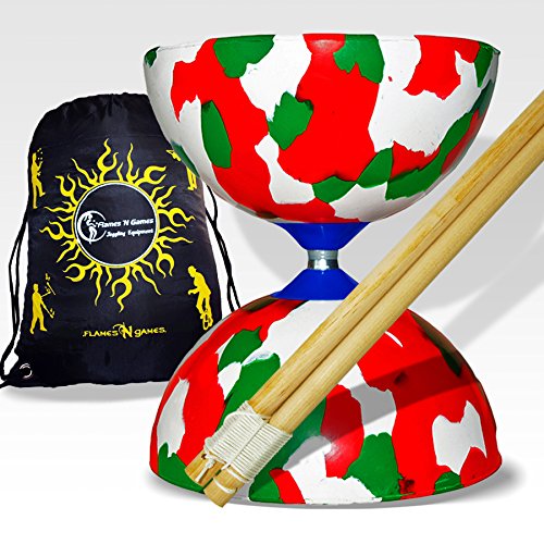 Flames 'N Games Juggle Dream Jester Diabolo Set di Bastoncini di Alluminio con Inclusa Corda e Borsa da Viaggio (Rosso Bianco Verde)