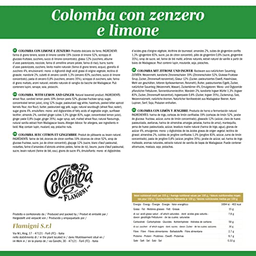 FLAMIGNI Colomba Pasquale con Limone e Zenzero 1 kg, Dolce Artigianale, Impasto Soffice e Delicato, Ricoperta con Granelli di Zucchero e Mandorle, Made in Italy