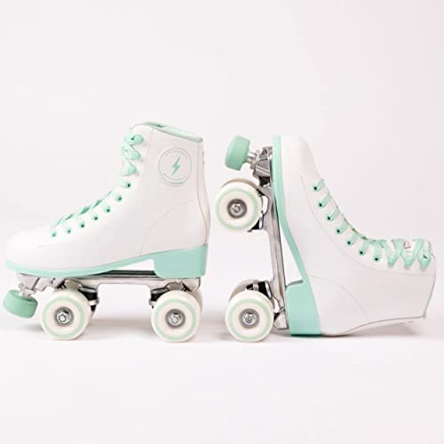 DUREZZA 80A E CUSCINETTI ABEC-7: Le ruote dei pattini paralleli hanno una durezza di 80A e le loro misure sono 58mm x 32mm. Il colore delle ruote è bianco con dettagli verde acqua. I pattini sono costituiti da un telaio in alluminio e da una robusta scarpetta in pvc con cuscinetti ABEC-7 per garantire stabilità e durata.