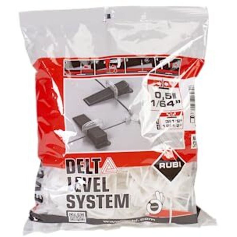 La funzione principale del sistema di livellamento LS DELTA di RUBI è quella di impedire la creazione di sopracciglia di posizionamento durante l'installazione di piastrelle ceramiche, sia sui pavimenti che nei paredes. Il sistema di livellamento LS DELTA impedisce inoltre il movimento delle piastrelle durante l'impostazione dell'adesivo e, durante l'installazione, si riduce il numero di correzioni nella posizione della piastrella ceramica stessa. Il principio base del sistema di livellamento DELTA LS è quello di premere il pezzo più alto, fino a quando non eguaglia la sua posizione con le piastrelle adiacenti, ottenendo così un sostanziale miglioramento della planarità superficiale. Il sistema di livellamento DELTA LS RUBI è un sistema a cuneo e flangia, consigliato per formati di 30x30 cm o superiori e spessori variabili fino a 12, 15 o 20 mm, a seconda del modello di flangia utilizzato. Utilizzando il sistema di livellamento LS DELTA di RUBI è veloce, facile e intuitivo. Una volta
