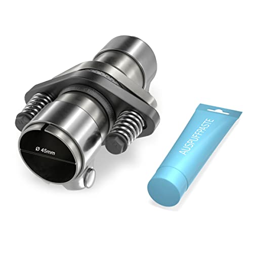 Set di flangia di riparazione universale, Ø 45, 50, 55, 60, 65 mm, flangia di scarico a 2 fori (diametro 45 mm), con materiale di fissaggio con viti e molla