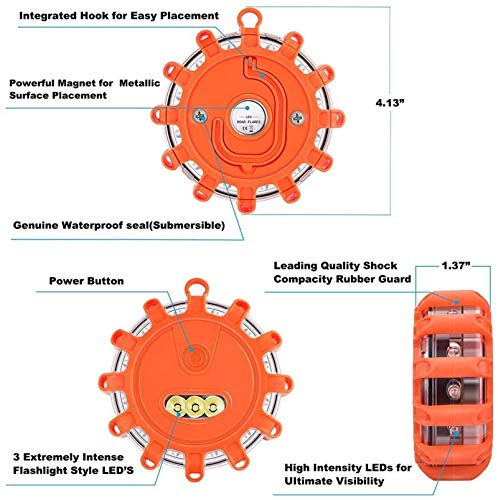 [ High Quality Material For Durable Use ]--This Led Road Flare Is Made Of High Strength Pc And Environmentally Friendly Tpr, Which Makes It Crash-Proof, Shockproof And Rainproof, Ensuring The Safety And Durability Of Use. Powered By 3 Aaa Batteries(Not Included), This Led Road Flares Can Provide You With Long-Term Use.