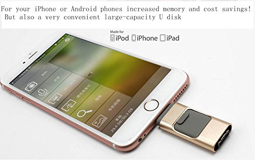 Flash Drive USB 3.0 per iPad iPod con connettore estesa fulmini, External Storage espansione di memoria per Iphone e Android, Plug and Play, lega intelaiatura del metallo, MFi Certified Gold (64 GB)