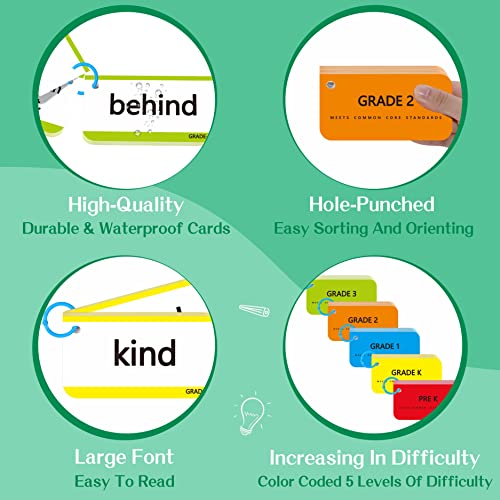 Innovazione d'uso: confezione compatta da 300 flashcard fronte-retro codificate a colori, che integrano 250 parole visive più utilizzate da Dolch, elenchi di parole Fry. Incluse anche 50 flashcard personalizzabili come desideri.