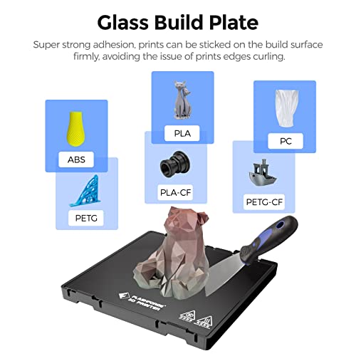 【Completamente Assemblato & Piatto di Vetro】Completamente chiuso e assemblato, fuori scatola, il piatto di costruzione è ben livellato in fabbrica. Letto di vetro liscio che è facile da rimuovere modelli, notevolmente minimi problemi di deformazione. Compatibile con il montaggio della piattaforma PEI. Dimensione di stampa 150x150x150mm.