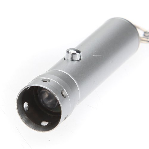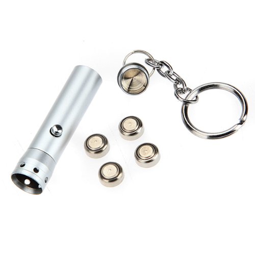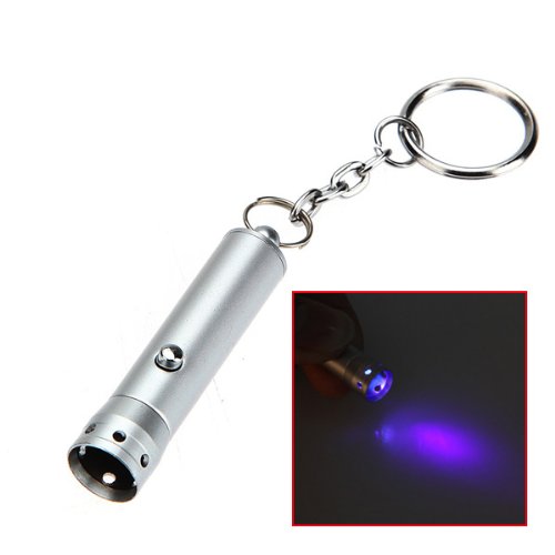 Mini UV LED Flashlight Torch Lamp Light Keyring With Key Chain Silver (Color: Silver)