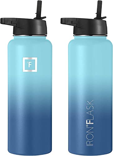 Iron Flask Borraccia sportiva - 1180 ml, 3 coperchi (coperchio in paglia), in acciaio inox isolato sottovuoto, doppia parete, tazza termica, mensa in metallo
