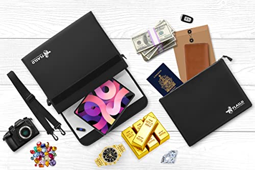 FLASLD Sacchetti ignifughi per documenti e soldi, borsa sicura per contanti, oggetti di valore e passaporto, con rivestimento in silicone e chiusura a cerniera (38 x 28 cm)