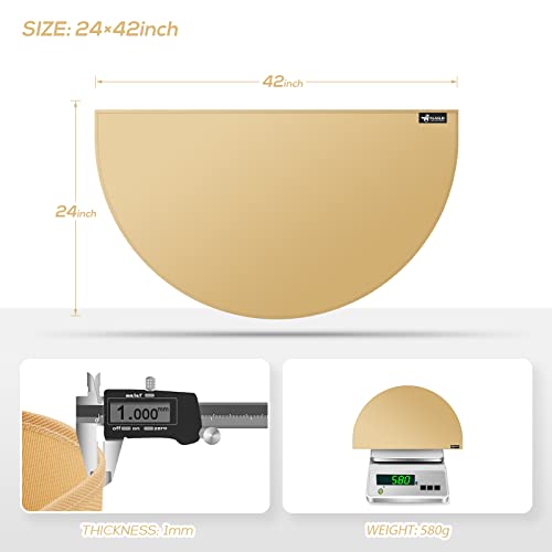 Tappetino antiscivolo per caminetto: il tappetino ignifugo a metà tondo è realizzato in panno di silicone antiscivolo sulle superfici anteriori e posteriori, che può fissare il tappeto a terra e impedire che si muova.