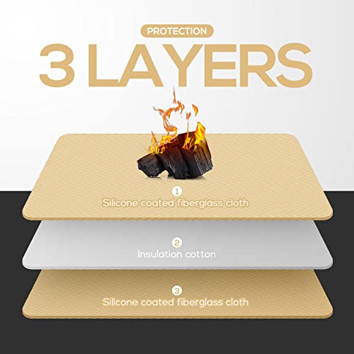 Materiale del tappetino per caminetto FLASLD: il nostro tappetino per camino resistente al fuoco è realizzato in tessuto in fibra di vetro rivestito in silicone a doppia faccia, che consente di resistere a temperature fino a 1000 °C, a prova di fuoco e isolamento del calore, che può proteggere i pavimenti o tappeti da bruciati o bruciati da scintille di camino, cenere.