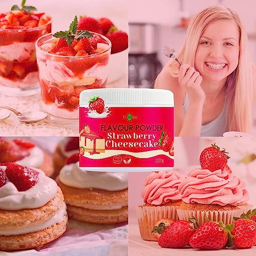 Flavour Powder Fragola Strawberry Cheesecake, 220 g, fragola Cheesecake in polvere a basso contenuto calorico, aroma in polvere fragola Cheesecake
