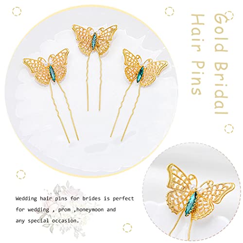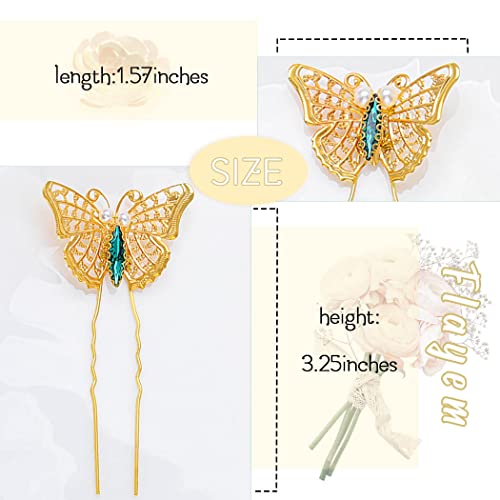 Flayem Forcine per capelli da sposa con strass a farfalla per capelli da sposa con cristalli verdi e perle accessori per capelli per donne e ragazze (3 pezzi)