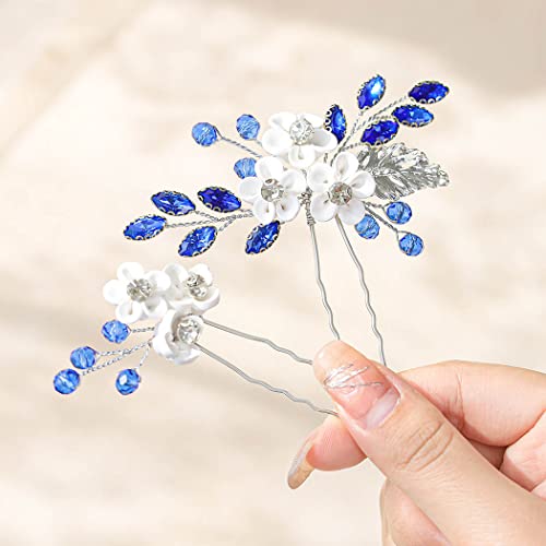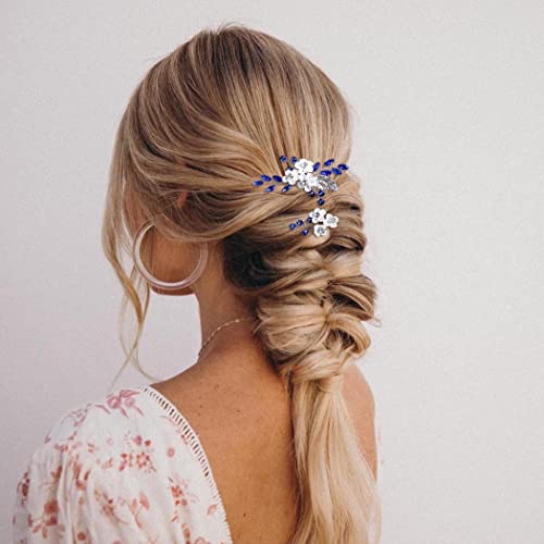 Materiale: le spille da sposa per capelli sono realizzate in lega di fiori e cristallo. Le forcine per capelli blu in filo di rame, il filo può essere regolato grazie alla tua acconciatura.