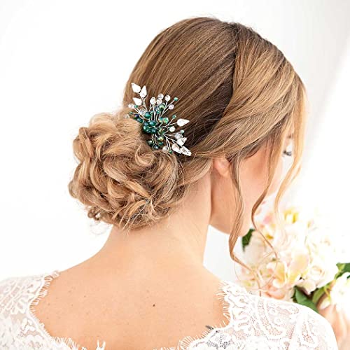 Flayem Mariea Cristallo Capelli Spille Matrimonio Verde Perle Strass Acchiappasole Capelli Capelli Accessori Gioielli Donna e Bambine