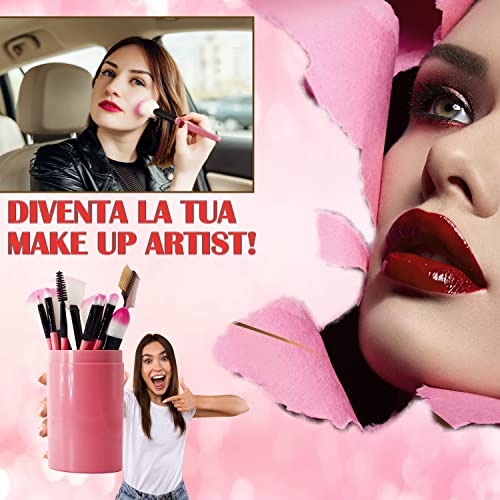 FleaMark Set Pennelli Make Up - 12 Pezzi Pennelli Trucco Set Completo Viso, Occhi, Sfumatura - Kit Pennelli Makeup con Porta Pennelli - Pennello Fondotinta, Cipira, Blush, Ombretto, Correttore (Pink)