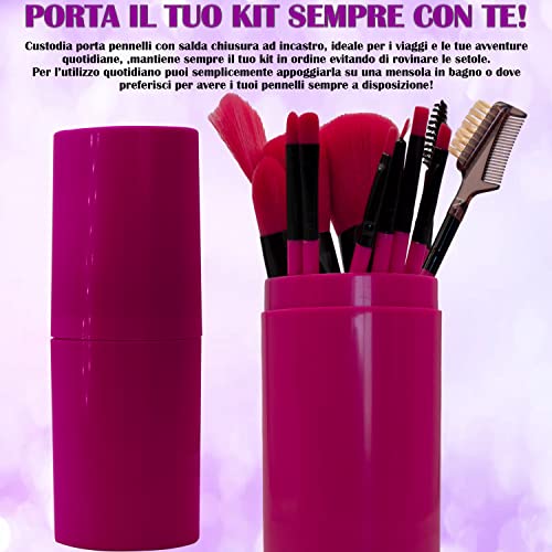 FleaMark Set Pennelli Make Up - 12 Pezzi Pennelli Trucco Set Completo Viso, Occhi, Sfumatura - Kit Pennelli Makeup con Porta Pennelli - Pennello Fondotinta, Cipira, Blush, Ombretto