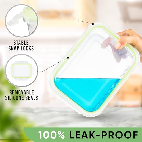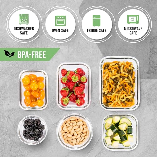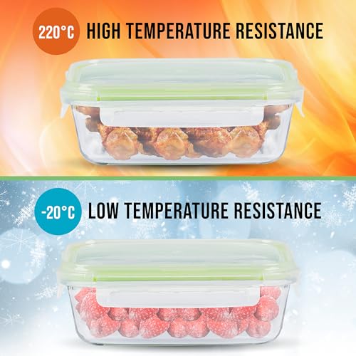 CONTENITORI PER ALIMENTI IN VETRO SICURI PER LAVASTOVIGLIE, FORNO, MICROONDE E CONGELATORE - I contenitori cibo ermetici in vetro sono sicuri da usare in forno (fino a 400°C/752°F) e nel congelatore, rendendoli versatili per conservare, cuocere e riscaldare gli alimenti. I contenitori in vetro per alimenti sono anche lavabili in lavastoviglie (ripiano superiore) per una pulizia facile e veloce.