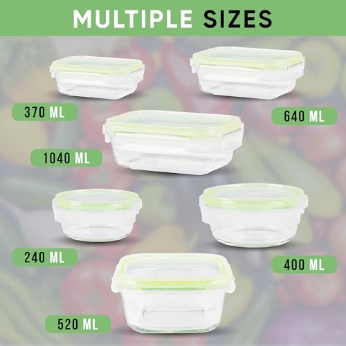 Home Fleek Contenitori in Vetro per Alimenti con Coperchio - Impilabili Meal Prep Contenitori Ermetici per Alimenti Vetro, Adatti Microonde E Congelatore Contenitori Cibo Ventro (Set di 6, Verde)