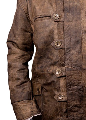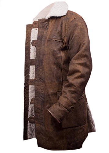 Flesh & Hide F&H Men's Bane Genuine Distressed Cowhide Leather Shearling Coat L Brown