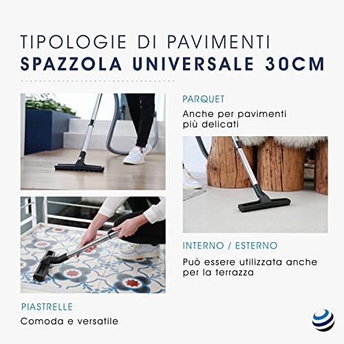 La spazzola universale è estremamente versatile e comoda, adatta all'uso su tutti i pavimenti. La spazzola doppio uso è ideale per pavimenti, tappeti e moquette. La spazzola per angoli è utile per la pulizia in spazi ristretti (come automobili, fessure di divani e poltrone). La spazzola per tappezzeria serve per la pulizia di divani, materassi e tappezzerie. La spazzola per spolverare è piccola e compatta, si utilizza per la pulizia di piccole superfici (come scrivanie, comodini).