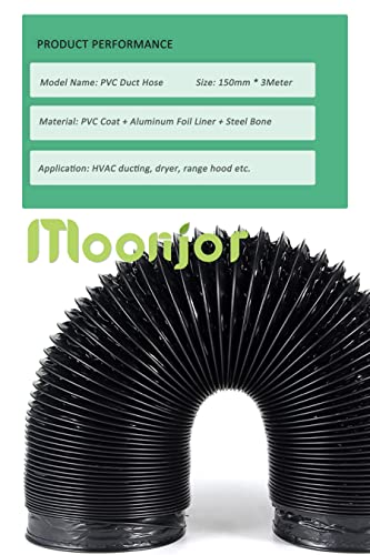 3m di Tubo Flessibile in PVC + Alluminio da 150mm, Moonjor Tubo Flessibile dell'Aria del Condotto per Ventola in Llinea, l'Essiccatore, Ventola di Ventilazione