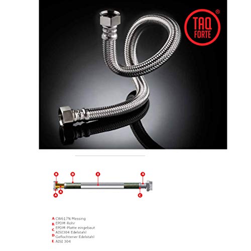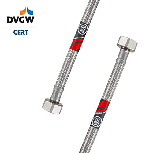 DVGW, tubo flessibile certificato 3/8" ÜM x 3/8", tubo di collegamento per acqua, prolunga PEX, tubo per rubinetto, con guarnizioni, valvola angolare, tubo di prolunga per rubinetto