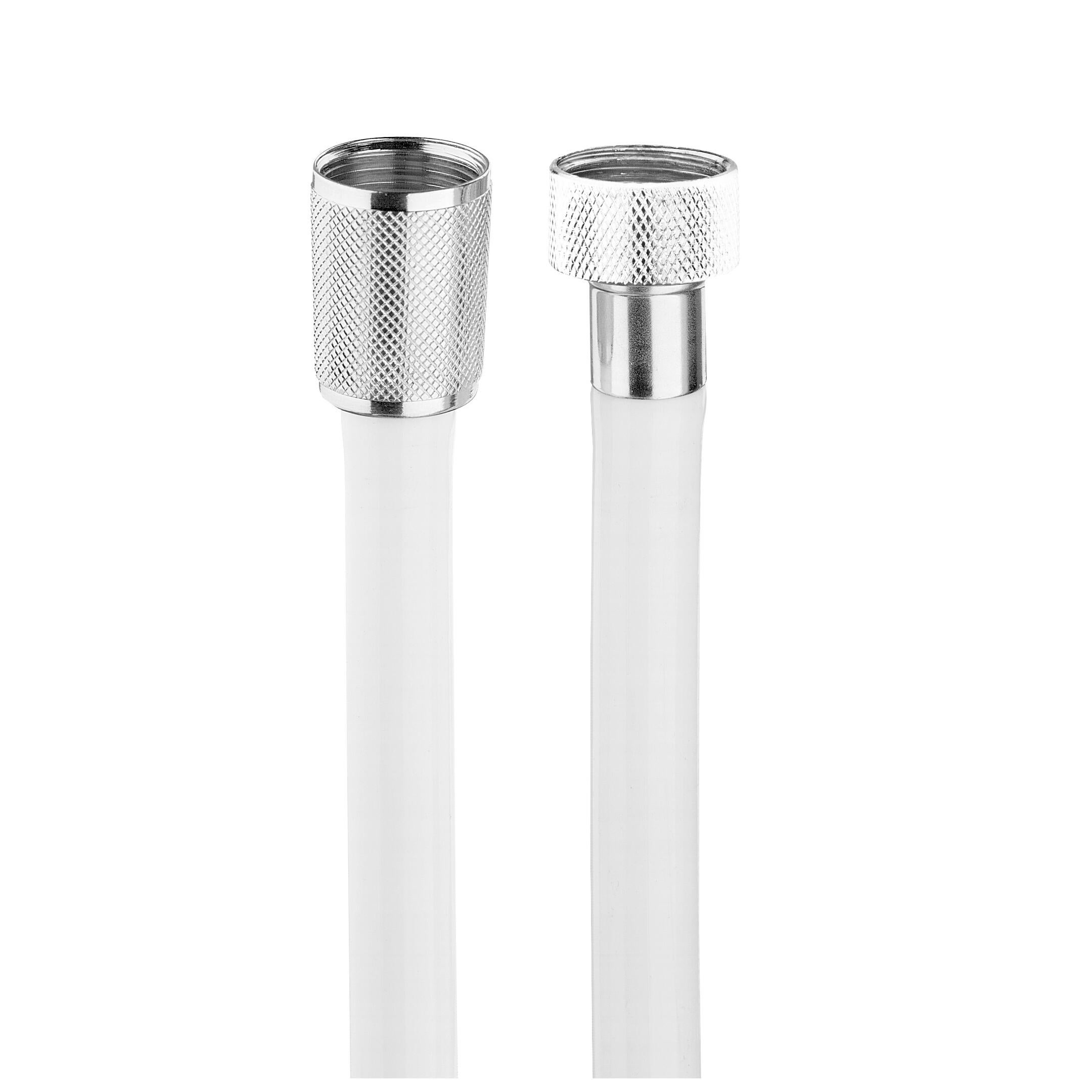 Flessibile in PVC bianco-cromo, attacchi universali 1/2". Ideale per doccia o vasca