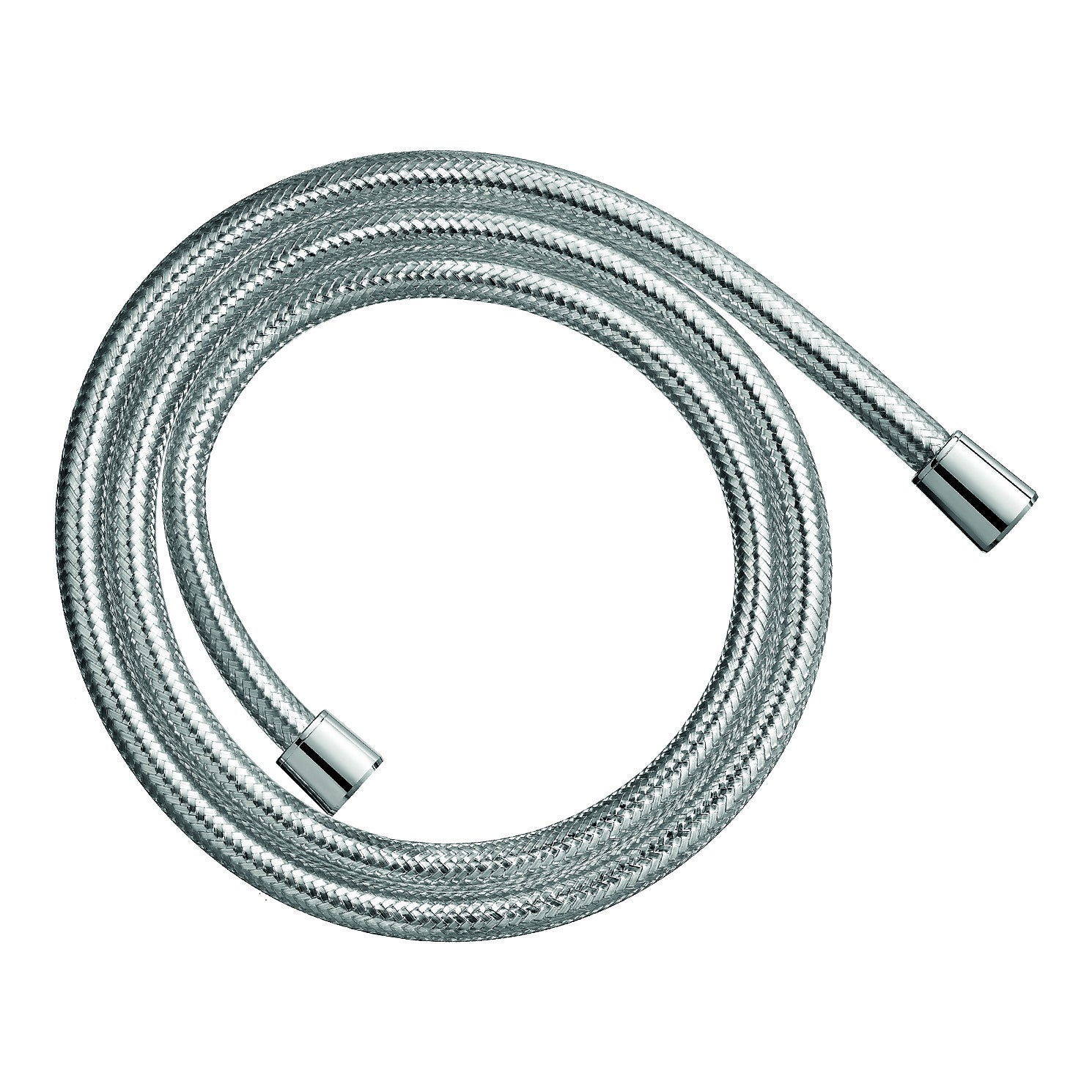 In alluminio cromato lucido, attacchi universali 1/2". Ideale per doccia o vasca. Il flessibile in PVC rende facile la pulizia. L'attacco per doccetta girevole rende il flessibile antitorsione