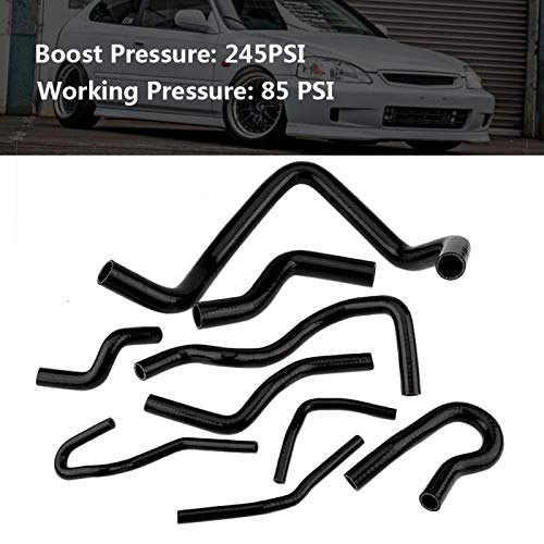 Kit tubo flessibile del radiatore in silicone, kit tubo flessibile del radiatore automatico in silicone da 9 pezzi per Civic D15 D16 SOHC EG/EK 1992-2000(Black)