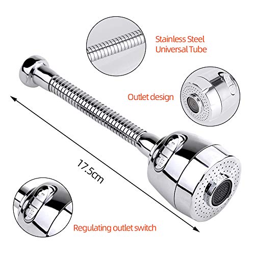 Rotazione completa flessibile a 360°: il tubo flessibile dello spruzzatore del rubinetto del collo d'oca lo gira o regolabile in qualsiasi direzione o angolo desiderato, rendendo facile la pulizia di forniture oversize nel lavandino o come grandi piatti o padelle, ecc.