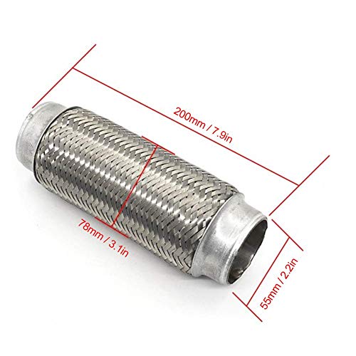 Tubo flessibile di scarico, tubo flessibile di scarico universale in acciaio inossidabile Tubo flessibile per giunti Accessori per riparazioni auto Argento(55MM*200MM)