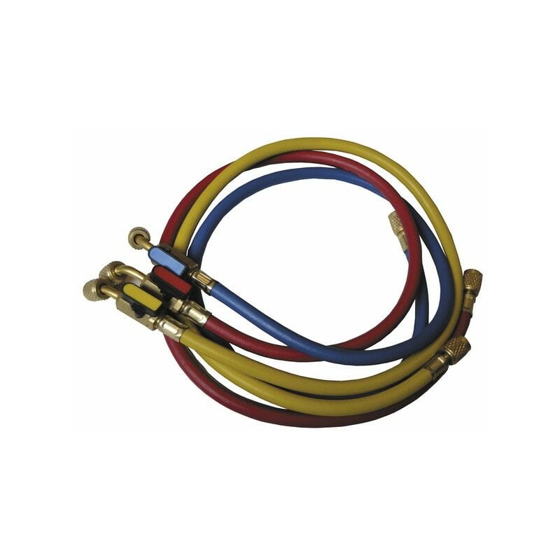 Kit di 3 flessibili R410A1500 mm60 flare F1/4?xF5/16?(blu, rosso) e flare FF 1/4 (giallo) con valvola Tenendo conto della natura di questo prodotto, si raccomanda di farlo installare da un profesionista del settore.