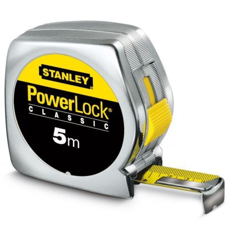 Mod. POWERLOCK Art. 33.191 cassa cromata in materiale sintetico. Nastro in acciaio al carbonio rivestito in Mylar. Clip di aggancio. Ritorno automatico. Nastro largo 19 mm. Lunghezza 5 m.