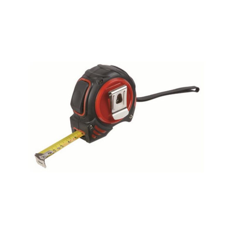 Flessometro autobloccante. Sistema di blocco che agisce durante lo svolgimento. Pulsante di rilascio del blocco per consentire il riavvolgimento automatico del nastro. Resistenza agli urti e all'usura. Custodia ABS con gomma antiscivolo. (DianFlex) 5 mt x 19 mm