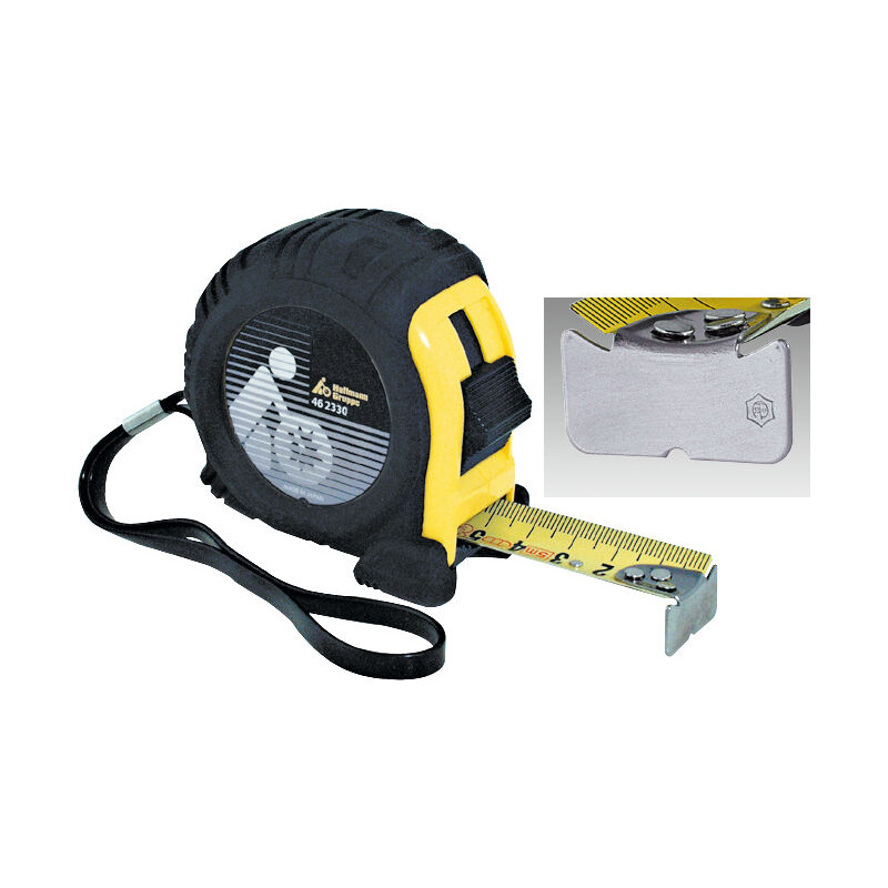 Nastro con ottima resistenza alla deformazione. * Custodia in plastica altamente resistente con clip da cintura rimovibile. * Ritorno e bloccaggio automatici del nastro. * L'ammortizzatore riduce il carico nella corsa di ritorno. * Gancio terminale per lo scorrimento. * Nastro giallo, stampato in rosso / nero e rivestito in acrilico per garantire un'elevata resistenza all'abrasione. * Molla resistente in acciaio di alta qualità. * Con custodia gommata. * Nastro con stampa bilaterale. Dati tecnici Taratura G1 Tipo di prodotto Flessometro Altezza corpo, mm 73 Lunghezza del nastro, m 7 Norma EG II Larghezza del nastro, mm 25 Larghezza corpo, mm 34 Lunghezza corpo, mm 77