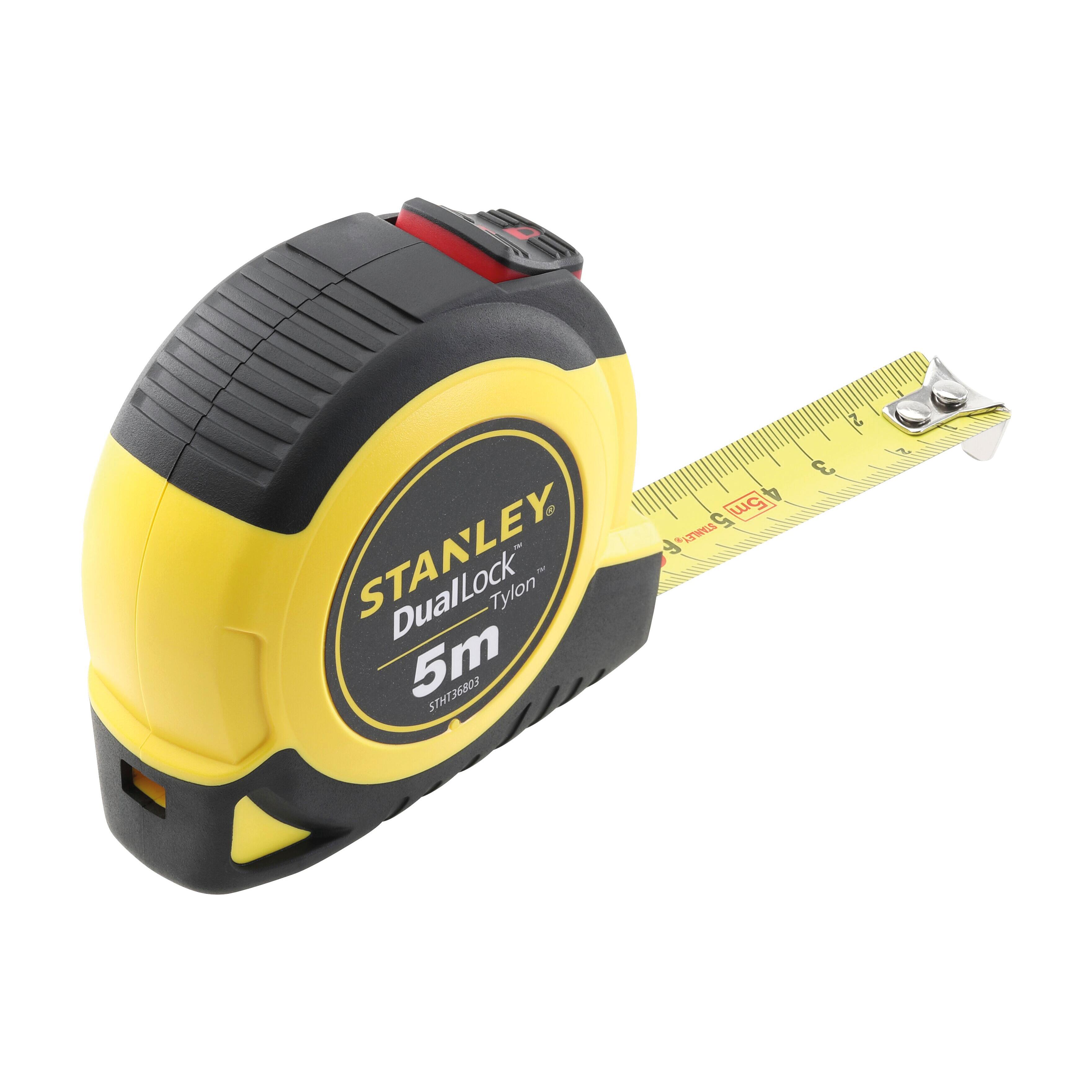 Flessometro pieghevole in acciaio, lunghezza 5 m, larghezza 19 mm. Cassa in ABS con inserti in gomma morbida. Due posizioni di blocco: modalità standard ed autobloccante. Clip di aggancio alla cintura. Nastro di qualità professionale con verniciatura polimerizzata e rivestimento con la pellicola in materiale sintetico Tylon (spessore 0,14 mm)