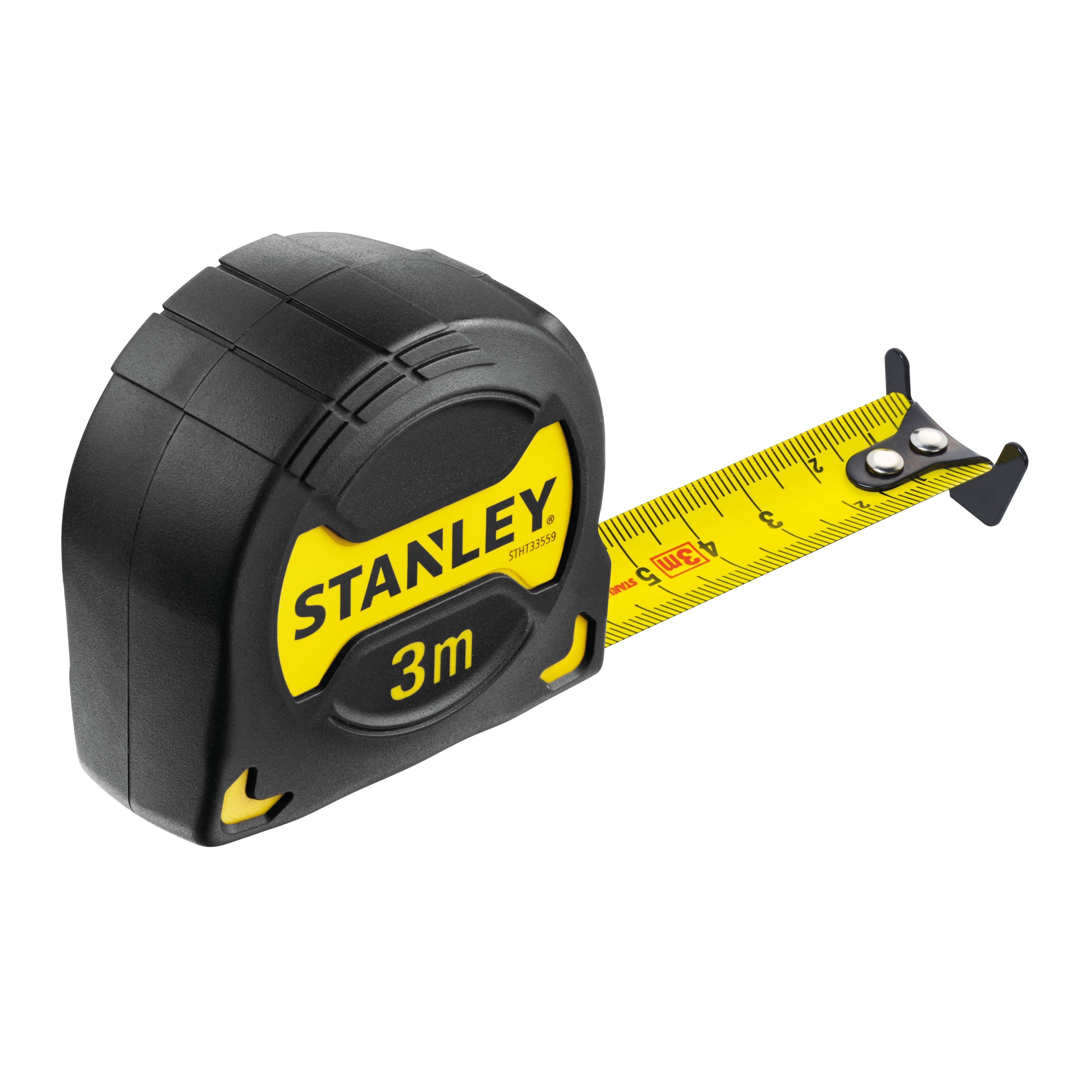 Flessometro pieghevole in acciaio, lunghezza 3 m, larghezza 19 mm. Cassa robusta shock asorbente rivestita in gomma. Rivestimento del nastro in nylon, rimane rigido fino a 3,05m. Superficie grip che non scivola su pendenze fino a 42°. Gancio maggiorato, pulsante di bloccaggio del nastro resistente agli urti