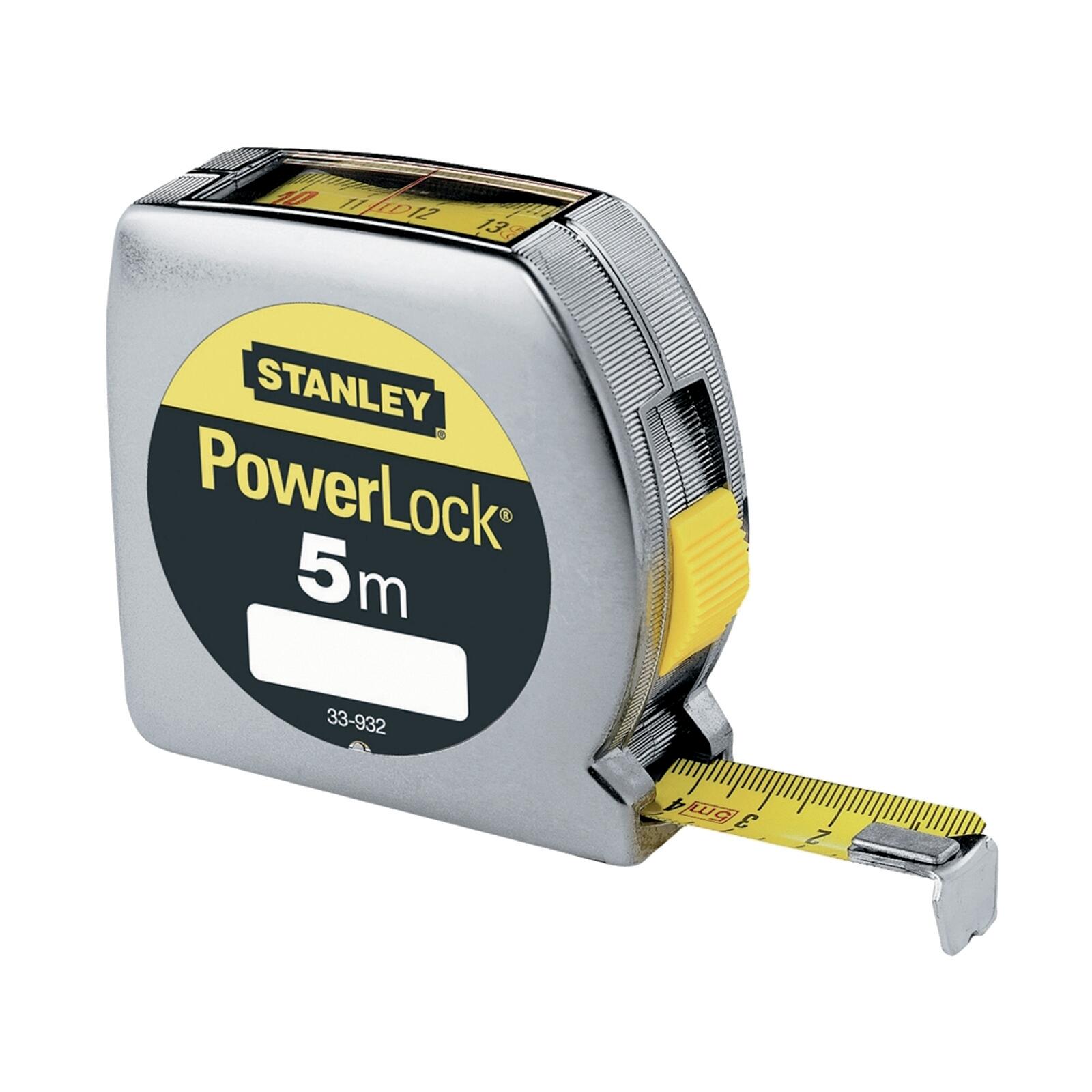 Flessometro pieghevole in acciaio, lunghezza 5 m, larghezza 19 mm. Cassa in metallo, dotato di doppia lettura, lettura superiore, pulsante di bloccaggio e rientro automatico. Classe di precisione II