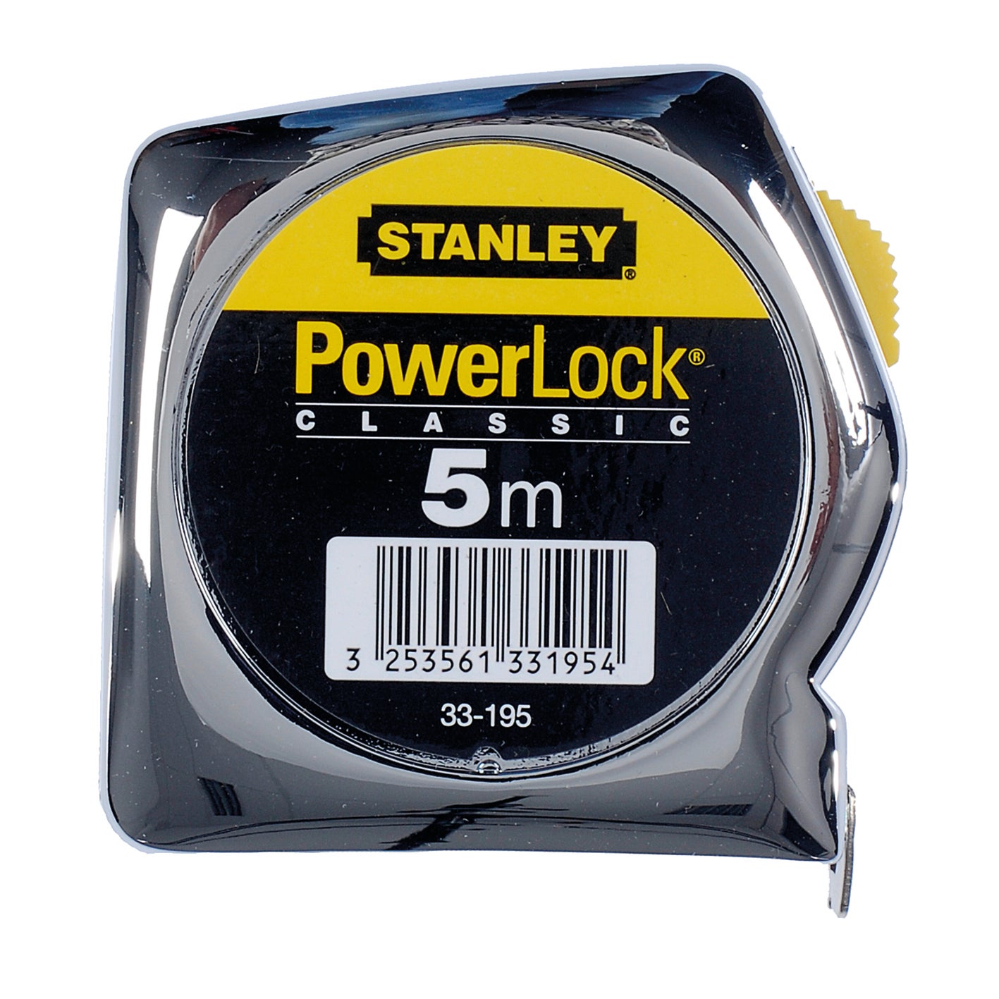 Flessometro pieghevole in acciaio, lunghezza 5 m, larghezza 25 mm. Nastro in acciaio al carbonio rivestito in Mylar. Clip per aggancio alla cintura. Rivetto pieno