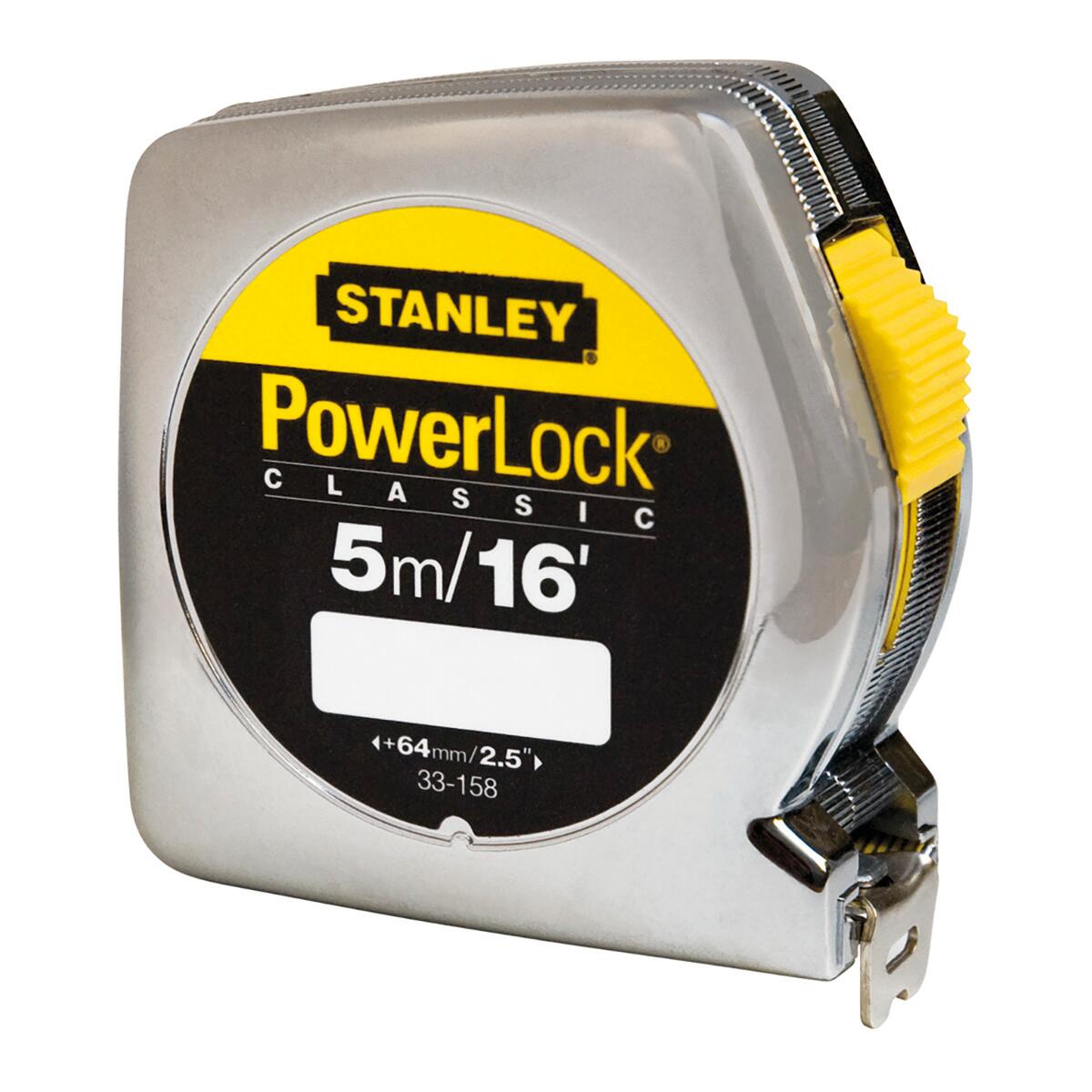 Flessometro pieghevole in acciaio, lunghezza 5 m, larghezza 19 mm. Nastro in acciaio al carbonio rivestito in Mylar. Clip per aggancio alla cintura. Rivetto con foro. Doppia misurazione in mm e pollici