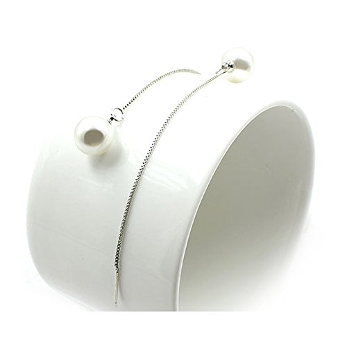 Fletion da donna elegante perla orecchini in argento 925 con perla argento catena pendenti lunghi goccia gocce auricolari per donne ragazze regalo di compleanno matrimonio sposa Prom casual formale occasione, Perla, Style 1
