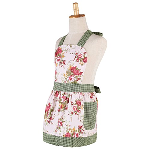 Fletion - Grembiule vintage, fantasia floreale, con tasche, da donna, per cameriera/chef, per cucina/casa/ristorante/BBQ/giardinaggio, personalizzabile, For Kids