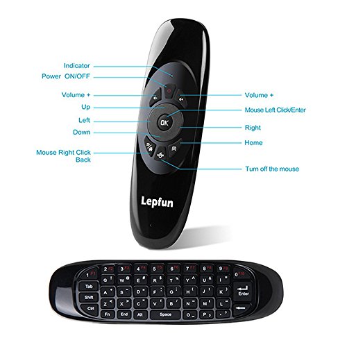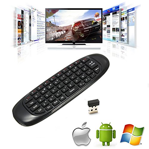 Controllo wireless 2.4 G con tastiera QWERTY: gradevole al tatto, funzionamento conveniente, abbandonare tradizionali limitazioni degli infrarossi, in grado di controllare TV/PC qualsiasi direzione, fissati anche sul retro, rilassati e completamente il controllo del PC, TV, ecc, in aria da Waving Air Control Mouse, per spostare il cursore sullo schermo, funzionare al vostro disposti perfettamente