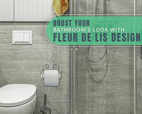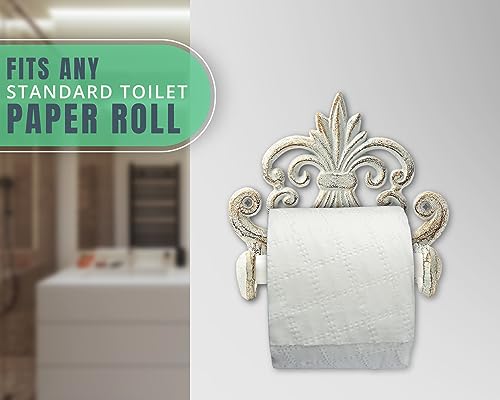 Fleur de lis porta rotolo carta igienica di Comfify - Porta carta igienica a parete in ghisa -Design vintage europeo - con viti e ancoraggi - Rustico Bianco
