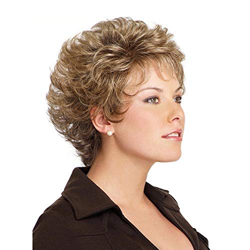 Fleurapance - Parrucca da Donna, Cappelli Ricci biondi e corti, con frangia, effetto naturale come cappelli veri, sintetica, resistente al calore