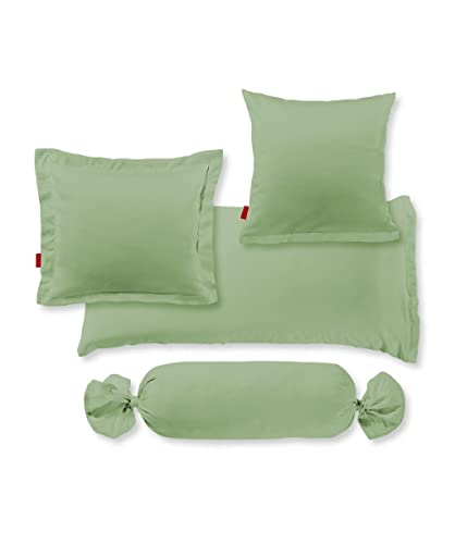 Fleuresse Colours Satin Uni 9100 -941, Federa in Raso Tinta Unita, 100% Cotone con Chiusura Lampo - Nero, Sage Green, 40 x 80