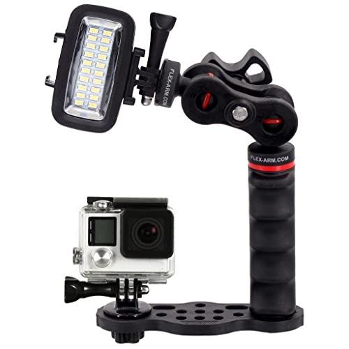 FLEX-ARM Staffa Subaquea GO-TRAY Impugnatura con Sfera 25 mm Clamp e Terminale Universale Illuminatori Action Light Supporto Action Cam per GoPro DJI Osmo GO-TR09